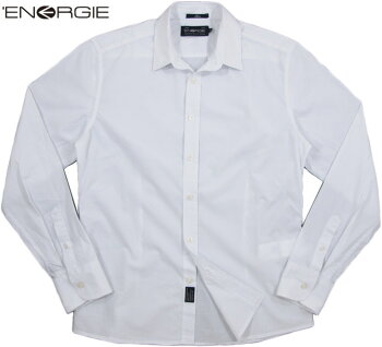 こちらは、 アンチエイジな清潔感のある洗練された知性的な着こなしが 楽しめる、エナジーの白無地シャツ。