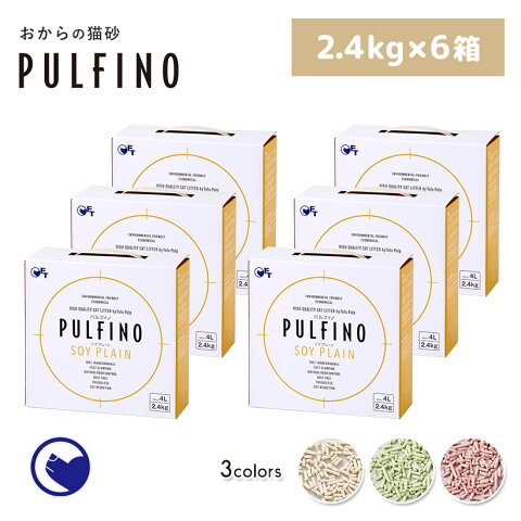 【OFT】PULFINO/パルフィノ 6箱セット おからの猫砂 ソイプレーン/ソイグリーン/ソイピーチ[とうふ 固まる ネコ砂 ねこ砂 トイレ 消臭 植物由来 おすすめ]■ご注意 ※ロット(生産時期、カラー)によってペレットの粒の太さに+5mmほど差異がある場合がございます。