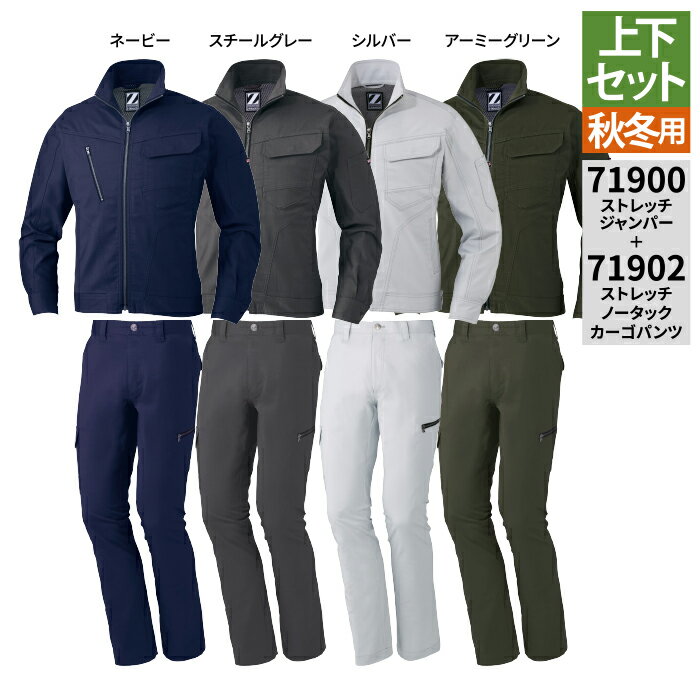 送料無料 作業服 秋冬用 自重堂 上下セット 71900 ストレッチジャンパーS〜3L と 71902 ストレッチノータックカーゴパンツ 70〜101 作業着 作業ズボン