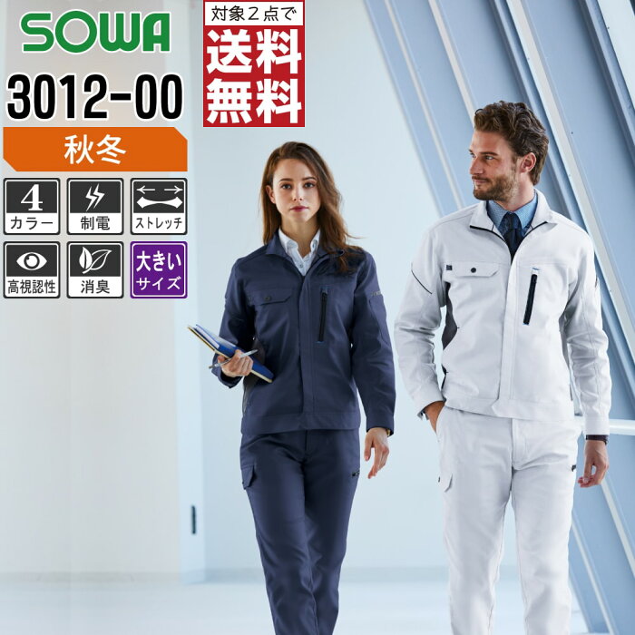 【 対象2点で送料無料 】 大きいサイズ 桑和 作業服 秋冬 制電 長袖 ブルゾン メンズ レディース ストレッチ 3012-00 SOWA 作業着 かっこいい おしゃれ 3L 4L 6L