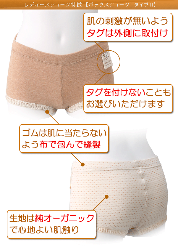 ショーツ レディース レース付ボックスショーツタイプH ボクサーパンツ オーガニックコットン 下着 綿 パンツ インナー 婦人 女性 綿100% はきこみ丈深め Ledy's shorts Ladies pants Organic cotton