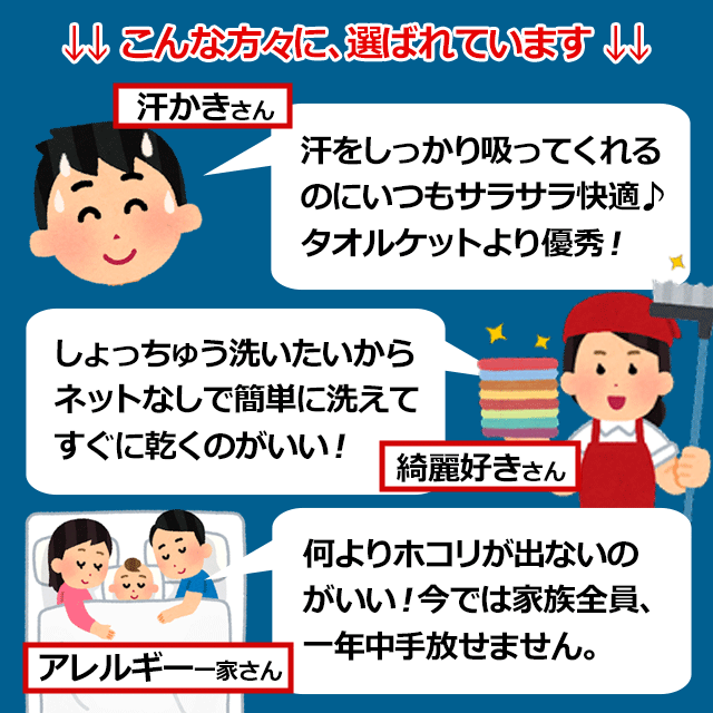 マークの説明はこちら>> サラサラの肌触り、 日に干した後のふんわり感。