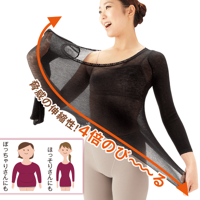 インナー レディース 長袖 [ 薄伸暖衣シルキープラス 丸首タイプ ]暖かい発熱繊維インナー 旅行の下着にも 遠赤外線 暖かい あったか繊維 インナー 防寒 ババシャツ 防寒 インナー 肌着 遠赤外線 下着 遠赤外線 インナー あったか インナー レース 長袖【即納】