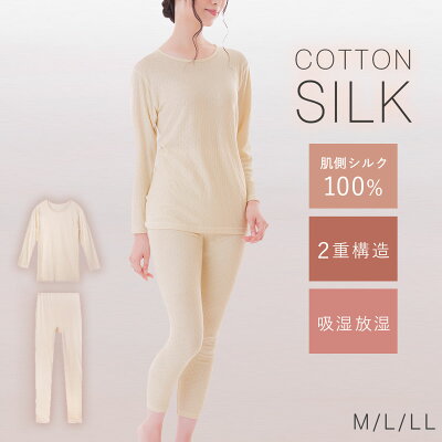 肌着 インナー レディース 長袖 シャツ レギンス スパッツ タイツ ボトムス 綿100% シルク100% 日本製 あったかインナー 暖かい 暖か 天然素材 生成り アイボリー 女性 女性用 絹100%+綿100%肌着 上下