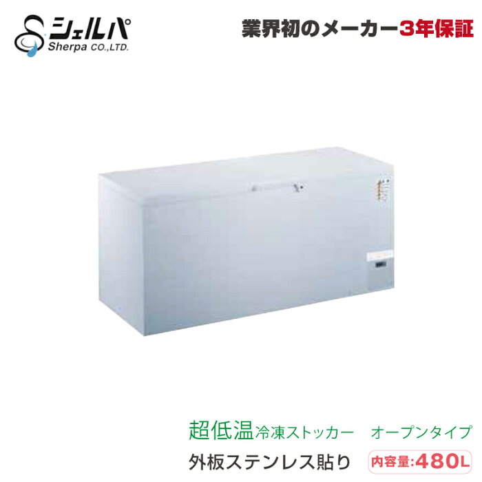 【車上渡し】超低温冷凍ストッカー シェルパ CC500-OR(SUS) 外板ステンレス貼り 110kg/容量480L オープンタイプ(鍵付き) | sherpa 冷凍庫 業務用 大型 トップジャパン 業務用冷凍庫 クーラーボックス 保管庫 |