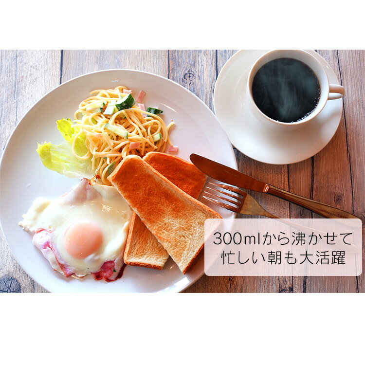 300mlからでも沸かす事ができるので、一人前のカップラーメンや5人分のコーヒーまで使用可能♪