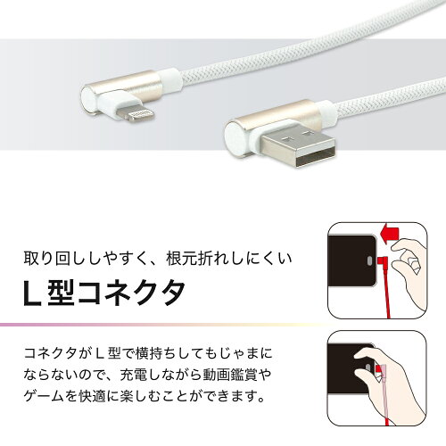 ・L型で取り回ししやすく、じゃまにならないので、 充電しながらゲームや動画鑑賞を快適に楽しむことができます。